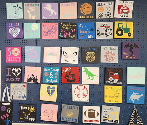 This has been such an exciting addition to our store! Book your private party with us. For a $50.00 booking fee, you just pay for the signs your guest choose to do. We also offer Sip and Paint workshops with your choice of wood or acrylic paint on canvas. Check us out on our Facebook page to stay updated on all our workshops. Contact us to set up a party or if you have any questions.